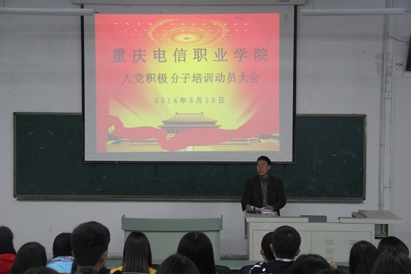 3月13日中午,学校党总支在第一阶梯教室召开了入党积极分子党校培训动员大会。学生处处长、党总支组织委员杨福元及参加重庆文理学院第61期党校培训的66名入党积极分子参加了会议。