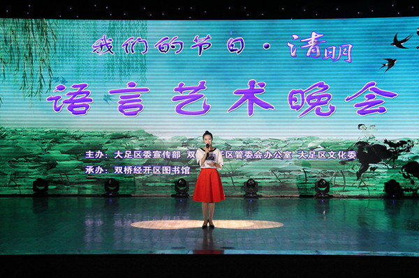 4月5日晚,由大足区宣传部、双桥经开区管委会办公室、大足区文化委主办,双桥经开区图书馆承办的“我们的节日·清明”语言艺术晚会在双桥经开区多功能影剧院隆重上演。