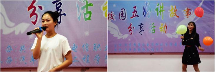 来自各个学院的共10名选手分享了各自眼中的电信学院的故事:宏伟的图书馆,丰富多样的食堂美食、温暖舒适的寝室环境、妈妈型老师队伍等等各具特色,精彩纷呈的给在场的师生带来了一场视听盛宴。活动结束时,王庆新总结致辞并给参赛选手颁奖。