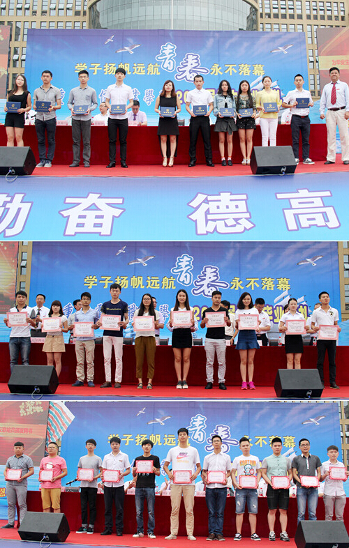 毕业生代表2012级金融与证券1班阳玲同学发言,她代表全体毕业生感谢母校的培育之情和对母校的不舍之情,并庄严承诺走出校门之后会做好三件事:努力做一件人生了不起的事,每年做一件回报父母的事,时常做一件母校想得起的事。