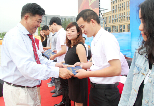 王大成校长为毕业生代表颁发毕业证书。