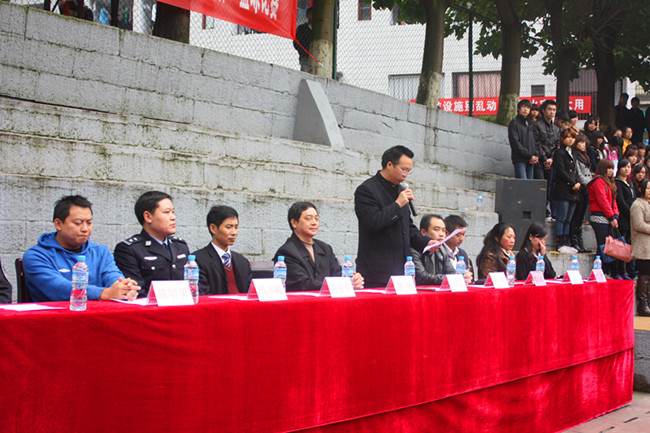 开幕式上,首先白助理做了讲话,他代表学校对本次比赛顺利进行表示热烈祝贺,对裁判员、各参赛队以及为本次比赛付出辛苦劳动的工作人员致于诚挚的问候。同时白助理对本次比赛还提出了三点希望和要求,希望裁判员和运动员们能本着“友谊第一、比赛第二”、“公开、公平、公正”的原则完成本次比赛。接下来,运动员代表和裁判员代表宣誓。
