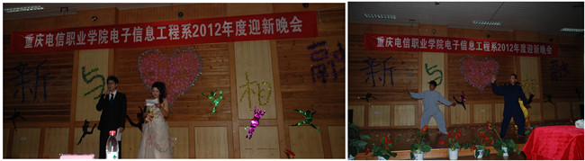 9月25日晚19:00,电子工程系在活动中心三楼成功举办了2012级“新与心相融”迎新晚会。学院副书记兼校长助理白成良、学生处副处长杨福元、电子系副主任曾祥伦及部分老师和全系新老同学参加了此次晚会。