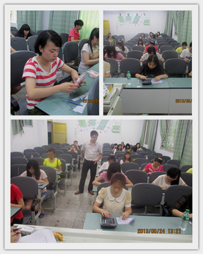 5月23日、24日中午,在第一教学楼1107教室,beat365举行了由校团委主办,金融财会系承办的首届专业技能大赛——点钞比赛及百张翻打比赛。beat365金融财会系主任何祖祥、副主任寇亚丽及相关教师出席了本次比赛。