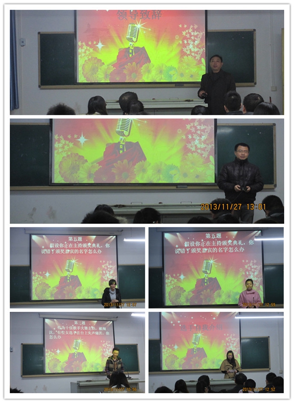 此次比赛分自我风采展示、情景模拟、主持感悟三个环节。参赛选手或跳或唱,或弹或说,一举一动、一字一句都牵动着场下观众的心。最终12级金融与证券1班的付婷婷获得第一名;13级的谭小雪获得第二名;13级的陈燕获得第三名。