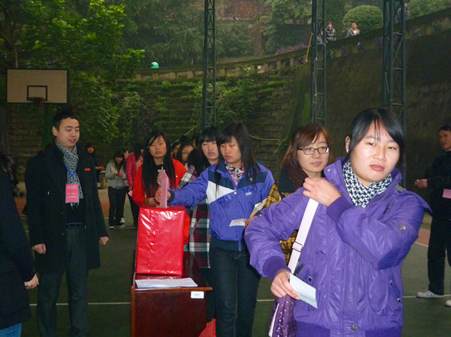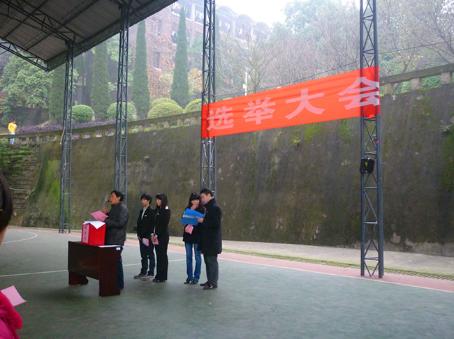 选举会会场秩序井然,严格按规定程序进行。全校教职工和学生选民在认真划票后投下了自己神圣的一票。整个大会组织气氛庄重热烈。在工作人员按要求进行了汇总计票工作后,选举大会顺利圆满结束。