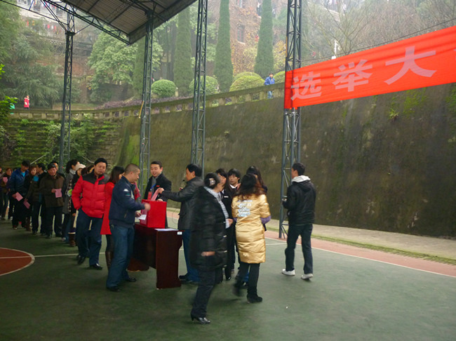 1227号上午9点,beat365作为永川南大街办事处第八选区投票站之一,举行了永川区人大代表换届选举大会,全校师生选民参加了选举,大会由beat365书记、副院长周及至主持。
