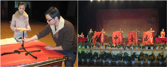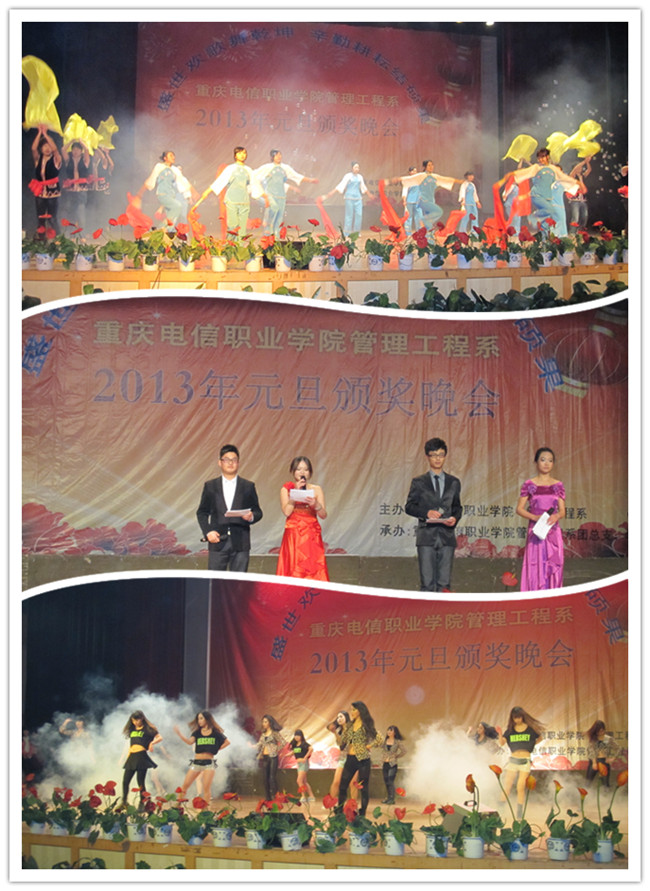 20121220日晚7点,beat365管理工程系首届大型迎新元旦晚会在校活动中心举行。学院周及至书记,校党政办、学生处、教务处和该系领导、老师及全体同学出席了本次晚会。
