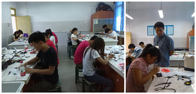 电子信息工程系主任曾祥伦、主任助理谢祥洲等7位教师也参与了这次考证工作的全过程,从最开始的元器件识别到简单电路的组装调试,到最后收音机的组装与调试都承载着各位老师的指导与关心。