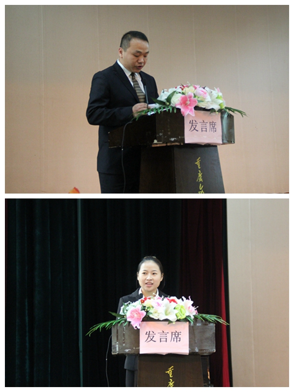 接着,吴道雄经理发表讲话并宣读“双十一顺丰速运物流季十佳优秀实习生”的表彰决定、最佳优秀实习指导教师的表彰决定。接着,优秀实习生代表白健铭、顺丰物流班学生代表佘美林分别发言。再次,顺丰速运重庆有限公司向学院授挂“顺丰”班牌匾,同时学院向顺丰速运重庆有限公司授挂校企合作“人才培养”基地牌匾。最后,顺丰速运重庆有限公司人力资源部高级经理李全斌,我院院长王大成分别发表致词,强调一定要把握专业方向,拓展技能知识,增加就业才干,积极参加社会实践活动。