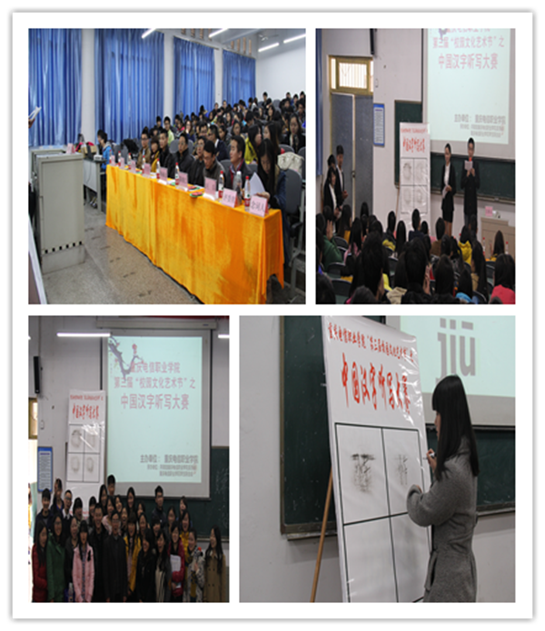 为传承中华民族传统文化,校团委于20131129日中午在第一阶梯教室举办了beat365正版唯一官网必一第三届“校园文化艺术节”之“中国汉字”听写大赛决赛。学校副校长白成良、学生处处长杨福元、艺术工程系主任助理吴智勇、各系团总支书记、辅导员老师和近200名学生参加了本次活动。