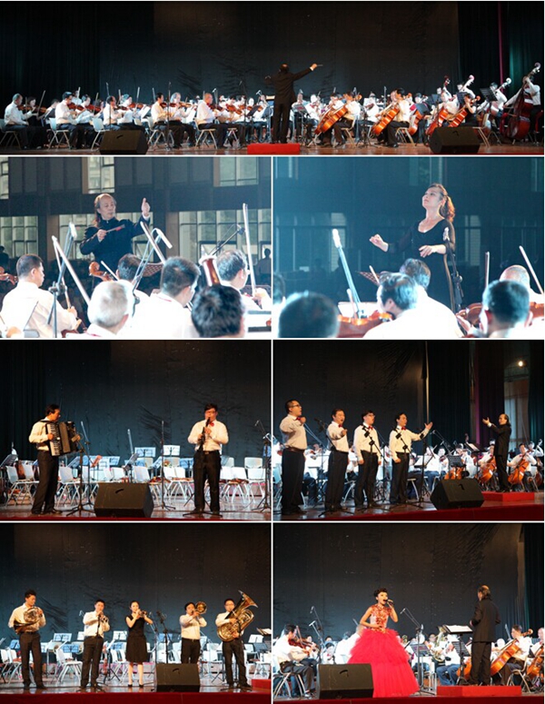 演出以欢快优雅的《花好月圆》拉开序幕。乐团演奏了《北京喜讯到边寨》、《梁祝》、《太阳出来喜洋洋》、《茉莉花》、《卡门序曲》等曲目,乐团还表演了男声四重唱《游击队之歌》、女声独唱《我爱你中国》等节目。指挥家精彩的指挥,演奏师精湛的演奏,歌唱者优美的歌声,引来了全场师生的阵阵掌声,带领全场师生享受了一场震撼的听觉盛宴。
