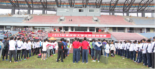 由重庆市教育委员会主办、重庆文理学院承办的“2015年重庆市大学生田径锦标赛”于5月8日至10日在永川区体育中心举行,本次田径锦标赛分甲、乙、丙三组,甲组为本科院校普通学生,乙组为高职高专院校普通学生,丙组为体育专业学生(含享受高考优惠政策降分录取的高水平运动队学生、体育特长生等)。来自重庆市52所高校的1000多名运动员参与本次比赛。