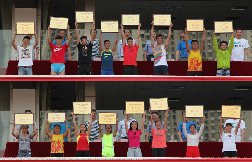 在三天的比赛中,队员们不畏强手,奋力拼搏,张天文同学获得乙组男子200米冠军、男子400米亚军的好成绩;张天文、吴海平、冉骥、蒋涵四名同学在乙组4×400米接力赛中获得季军;王欢同学在女子乙组三级跳远中获得第6名;beat365田径队在乙组(31个所学校)比赛中获得男子团体第12名的优异成绩。