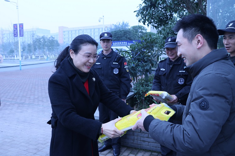 1月24日(农历除夕),受学校党政领导委托党委副书记、副校长代敏带领校务部等有关部门负责同志看望慰问了春节期间仍然坚守在工作岗位的值班人员,为他们送去了学校的关怀和新春的祝福。