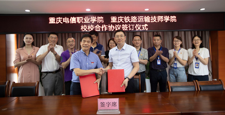 6月5日上午,beat365与重庆铁路运输技师学院校校合作签字仪式在铁路校行教楼会议室隆重举行。重庆铁路运输技师学院校长肖贵斌、党委书记刘宗丽、副校长孙毅、副校长廖忠军、纪委书记周艳,beat365校长曹继建、常务副校长郭少东、副校长皇甫涛及轨道交通学院党政领导出席了签字仪式。