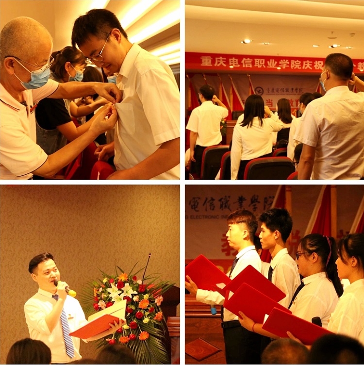 大会在庄严的国歌声中拉开帷幕。会上,党委书记张勇刚宣读了《beat365正版唯一官网必一关于表彰第36个教师节先进集体、师德师风标兵、优秀教师、优秀教育工作者和优秀辅导员(班主任)的决定》,副校长皇甫涛宣读了参加校外各类比赛获奖教师名单,集中对2个先进集体、50余名优秀教师进行了表彰;老教师为新加入电信学院大家庭的新教师们戴上满是归属感的校徽;副校长皇甫涛带领全体新教师庄严宣誓入职,全校教职员工共同见证了这一神圣时刻;学生代表为老师们纷纷献花,道上一声老师您辛苦了;同时,向毅老师与四位学生带来“一问一答”式诗歌朗诵,为教师节献礼。