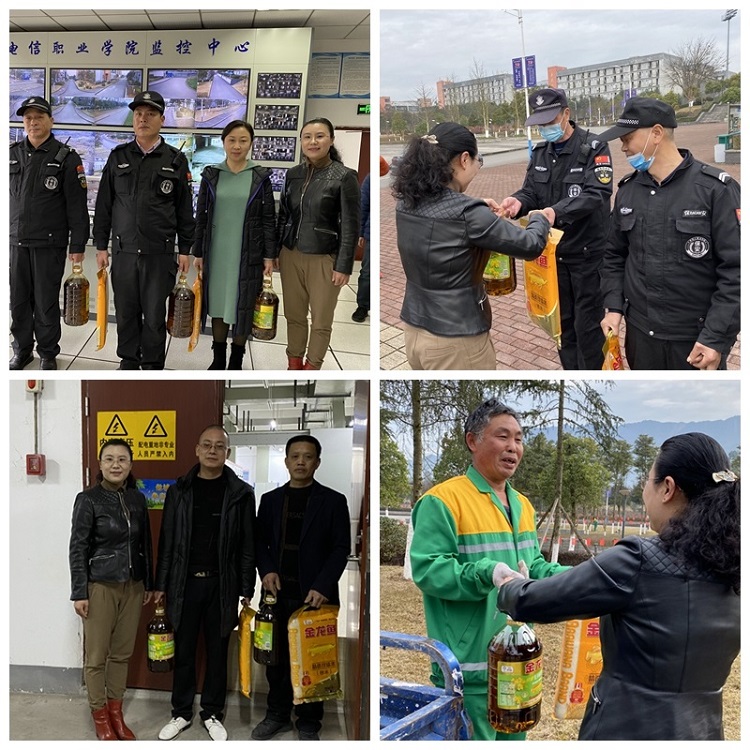 2月11日,农历大年三十,副书记、副校长代敏率队慰问当日在岗教职工,校务部、教信部、安管处、总务部等部门相关人员参加慰问活动。
