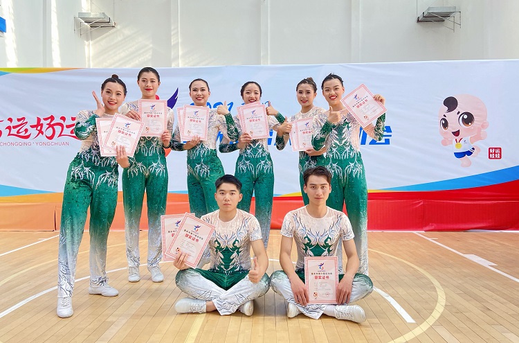 来自全市各地共45支代表队、500余名参赛选手汇聚该校,共逐冠军;赛前在吴智勇院长的精心部署、党员指导老师的精心指导和学生的努力训练,经过两天的激烈比拼,我院健美操团队与多所本科体育专业院校的选手同台竞技,最后荣获“五人竞技健美操丙组”第四名,“八人有氧舞蹈丙组”第五名的佳绩,党员同志以身垂范,带领学生参赛以优异的成绩为建党100周年献礼。