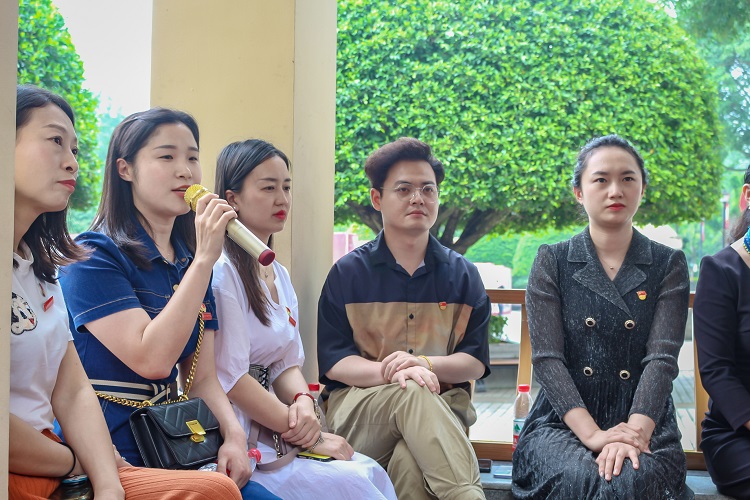 在陈列馆外凉亭里,党员干部们开展“学党史 明初心 知使命”党史大讲堂,党委委员、组织部副部长赵晓波通过七个小故事,深情讲述了聂荣臻元帅奋斗的一生:聂荣臻元帅年轻时就刻苦读书,寻找救亡图存的道路,当他发现只有革命才能救国时,毅然投笔从戎。从北伐战争、抗日战争再到解放战争,他全心全意的投入到了建立新中国、解放劳苦人民的伟大事业之中。新中国建立后,他亲自在荒漠上风餐露宿的督导我国原子弹、氢弹的研发与试验。他的这种鞠躬尽瘁、死而后已的精神深深打动着在场的党员干部,党员代表尹明锂、王向前、夏霁雪纷纷表示:“一定要认真学习党史国史,知史爱党,知史爱国,以聂荣臻元帅等革命先烈为榜样,坚定理想信念,勇担使命重任,坚定不移跟党走,立足岗位,担当尽责,为中华民族的伟大复兴作出应有的贡献。”