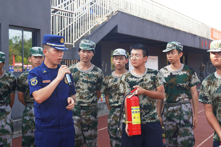二是讲授消防安全知识。在学校运动场,消防救援大队潘长春参谋用通俗易懂的语言讲授了如何预防火灾、火灾发生后如何报警、如何扑救初期火灾、如何使用消防器材以及被困火场如何逃生等与日常学习生活密切相关的各类消防安全知识,并结合真实火灾案例指出消防安全的重要性,使全体新生深刻认识到了火灾的危害性,并告诫学生要时刻注意用火用电安全。活动最后还专门组织学生穿着消防战斗服和使用干粉灭火器灭火体验。