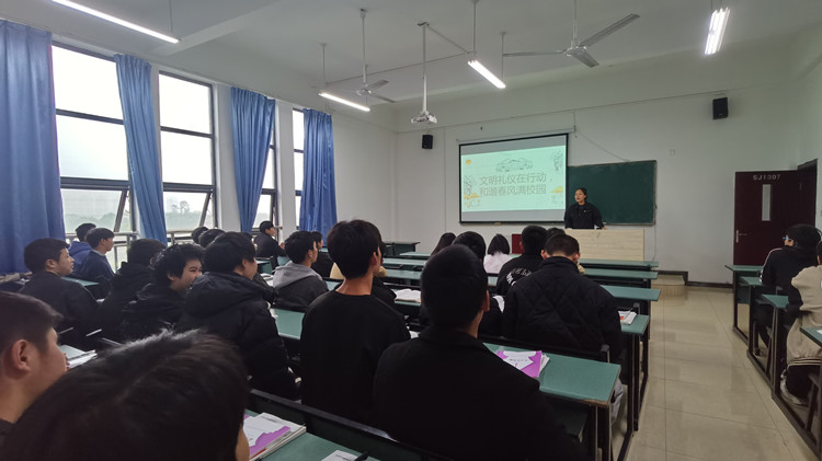 三是各学院根据学院特色围绕“文明常驻在我心”开展主题教育班会,重点学习校内文明礼仪相关制度,开展各种形式的抛弃陋习活动。组织学生对其班级、宿舍以及认种区域进行“大扫除”活动。