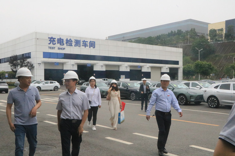 接着,考察组来到智能化程度全国领先、世界一流的重庆金康新能源汽车有限公司旗下的赛力斯汽车有限公司两江智慧工厂,参观了该公司与华为共同打造的华为智选高端智能电动汽车AITO问界M5的智能化生产线,看望了人工智能与电子学院在该工厂实习和就业的学生,并就校企深度合作和学生实习就业工作进行了座谈交流。