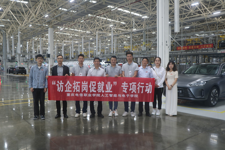 为贯彻落实教育部《关于开展全国高校书记校长访企拓岗促就业专项行动的通知》精神和《beat365正版唯一官网必一“访企拓岗促就业”专项行动实施方案》,促进毕业生更加充分更高质量就业,2022年5月30日,学校校长曹继建带领校务部部长赵晓波、人工智能与电子学院党支部书记夏敏、团总支书记何佶以及学院应届毕业生辅导员老师一行6人组成的访企拓岗考察组,走访了重庆骏睿诺科技有限公司和重庆金康新能源汽车有限公司。