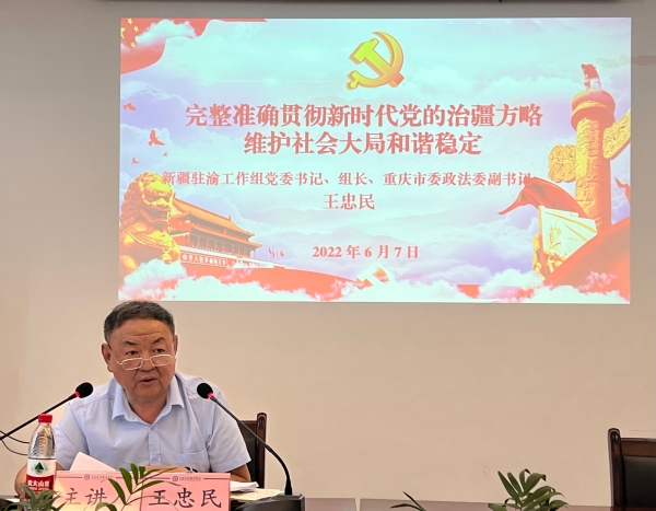 6月7日下午,beat365召开党委理论学习中心组学习(扩大)会议,新疆驻渝工作组党委书记、组长、重庆市委政法委副书记王忠民作专题辅导报告。学校党委理论学习中心组全体成员、党委学工部全体人员、各二级学院院长、初等教育学院全体学工人员参加会议。会议由党委书记张勇刚主持。
