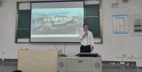 重庆财信龙水湖旅游文化发展有限公司温泉中心总经理曹剑对财信集团做了详细介绍,让2021级休闲体育专业学生对公司有一个全面的了解,重点介绍了暑期水上乐园项目的岗位情况;吴智勇院长对于2021级休闲体育专业学生即将开展集中实训提出希望,结合自己的专业特色,希望同学们发扬体育生特有的精神,做到不怕苦、不怕累,努力拼搏,秉着努力到无能为力,拼搏到感动自己的精神去迎接即将到来的集中实训活动。