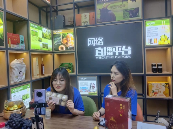 经济与管理学院师生代表在旭光村党群服务中心直播间开展了农产品直播活动,通过抖音平台宣传柠檬、皮蛋等农特产品,推动了农产品销售,获广大网友转发点赞。
