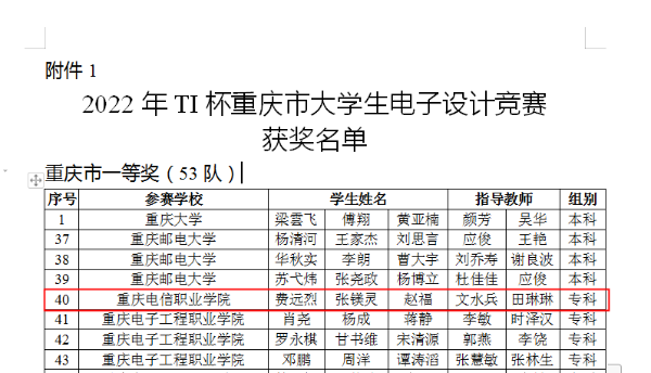 【喜讯】beat365学子在2022年TI杯重庆市大学生电子设计竞赛中创下佳绩