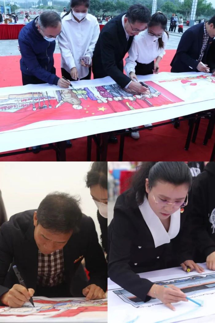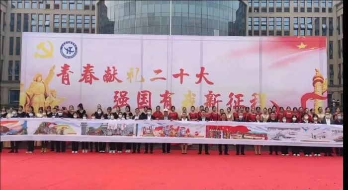 活动现场开展了“百年奋斗共描绘,师生献礼二十大”——20米长卷绘制活动,与会领导和师生代表共同书写了对祖国的祝福。