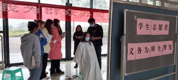 了解到学生们的理发需求后,人工智能与电子学院学院党支部高度重视,在全院范围内征集会理发的志愿者,积极协调,切实解决学院师生的实际困难。11月17日下午,在确保防疫安全的情况下,由2名学生志愿者组成的学生志愿服务点,为师生们开展理发服务。