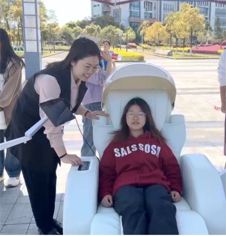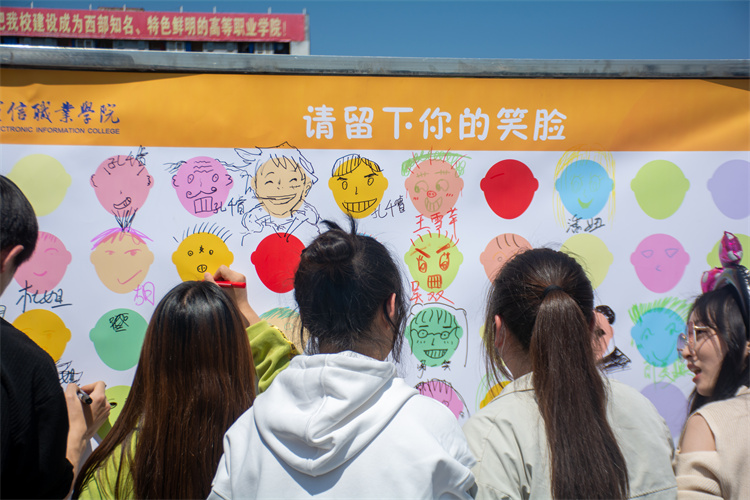 集体项目结束后,师生们在“请留下你的笑脸”主题展板上绘制了自己的专属微笑,并前往身心反馈减压区体验音乐放松按摩,在轻松愉悦的气氛中感受到了理性平和、积极进取的健康心态。