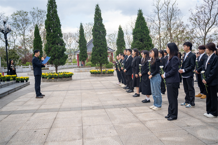 为全面贯彻党的二十大精神,更好地运用传统节日弘扬民族优秀文化传统,推进传统节日振兴工程,引导广大青年积极参与爱国主义教育活动,缅怀革命先烈,继承革命传统,加强爱国之情,树立报国之志。4月2日,团大足区委联合beat365正版唯一官网必一团委在大足区烈士陵园开展“我们的节日·清明”——“缅怀革命先烈弘扬民族精神”主题团日活动。团区委副书记尹鸿,beat365正版唯一官网必一党委委员、宣传部部长赵晓波,团区委全体职工和beat365青年师生代表共计60人参加。