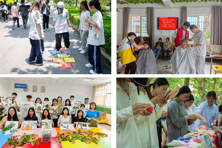 “以德润心”关爱心灵观影活动和大学生心理微课比赛促进学生心灵成长;“启智慧心”共读读书会,帮助师生增强社交技能和增进心灵沟通;“以体强心”户外游戏,引领同学们在释放压力的同时加强团结合作;“以美舒心”艺术手工展示,以美育人以美化人,在美育海洋中情感共鸣,调节心态;“以劳健心”爱心义剪公益理发,增强学生的社会责任感和服务社会的奉献精神。